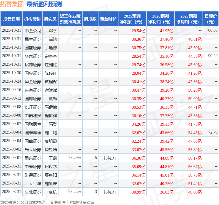 证券之星数据中心根据近三年发布的研报数据计算,甬兴证券王琎研究员团队对该股研究较为深入,近三年预测准确度均值为78.49%,其预测2025年度归属净利润为盈利36.36亿,根据现价换算的预测PE为35.3。