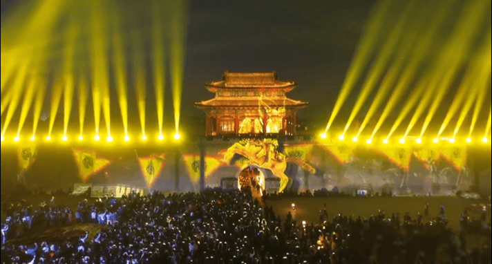光影交错间,广平府署化身“千灯会”艺术现场。“灯海长廊”“嫦娥奔月”等网红打卡点吸引游客驻足,而《梦回邯郸》沉浸式夜游则通过先进光影技术,将“甘丹传奇”“胡服骑射”“一念太极”等十大邯郸文化IP场景徐徐展开。游客乘船穿行其中,在流动的光影中感受三千年邯郸历史文脉,体验跨越时空的文化对话。